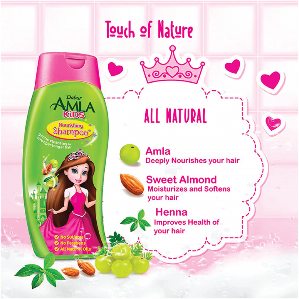 شامبو دابر أملا المغذي للأطفال منتج لطيف خالٍ من الكبريتات والبارابيناستبدل الشامبو الكيميائي القاسي من منزلك وامنح شعر أطفالك تغذية مستخلصات اللوز والأملا لشعر أطول وأقوى ولامعأحد مكوناته الرئيسية شيكا كاي الغني بالفيتامينات ومضادات الأكسدة التي تجعل الشعر لامعًا وينظف بشكل طبيعي فروة الرأس والشعر ، ويحسن ملمس الشعر