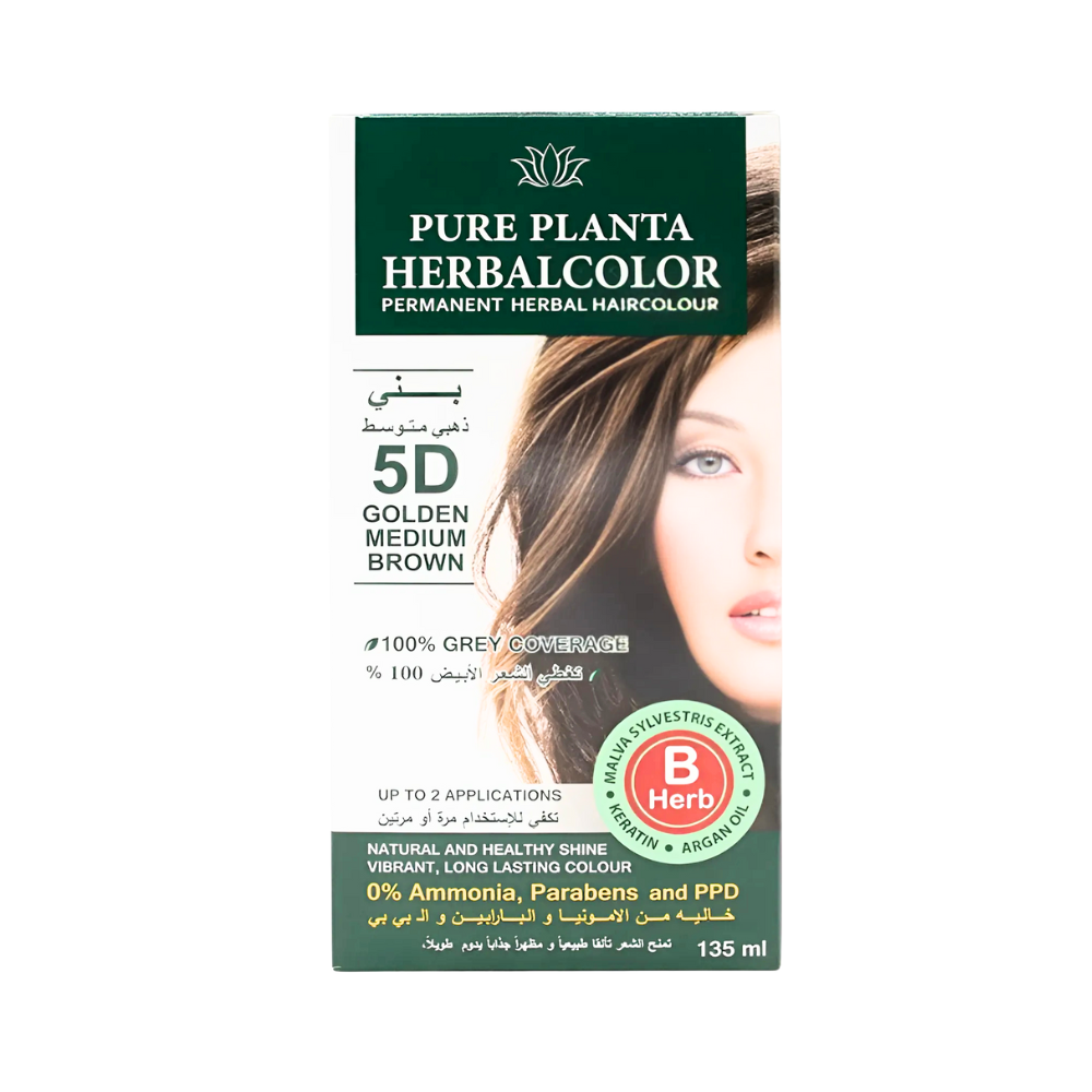 - لون بني ذهبي متوسط (5D): تمنحك هذه الصبغة لون بني ذهبي متوسط مع لمسة دافئة من الذهبي الذي يضيف إشراقة وحيوية للشعر. هذا اللون يعكس تدرجات دافئة وطبيعية تناسب جميع أنواع البشرة ويعطي مظهرًا أنثويًا وأنيقًا.