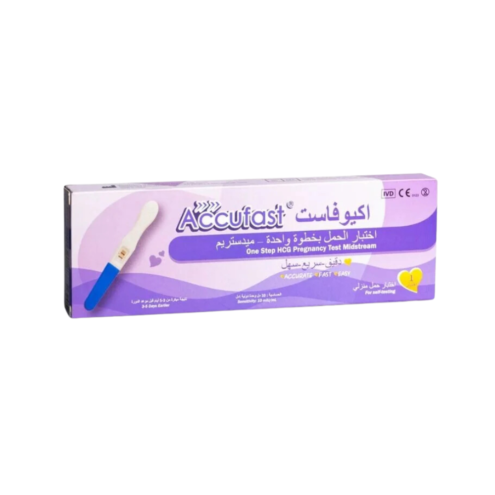 اكيوفاست جهاز اختبار حمل منزلي ميدستريم هو اختبار حمل منزلي سريع وسهل الاستخدام، يعتمد على تقنية الاستشعار البيولوجية للكشف عن هرمون الحمل hCG في البول. يتميز الجهاز بدقة عالية تصل إلى 99%، ويمكن استخدامه من اليوم الأول من تأخر الدورة الشهرية