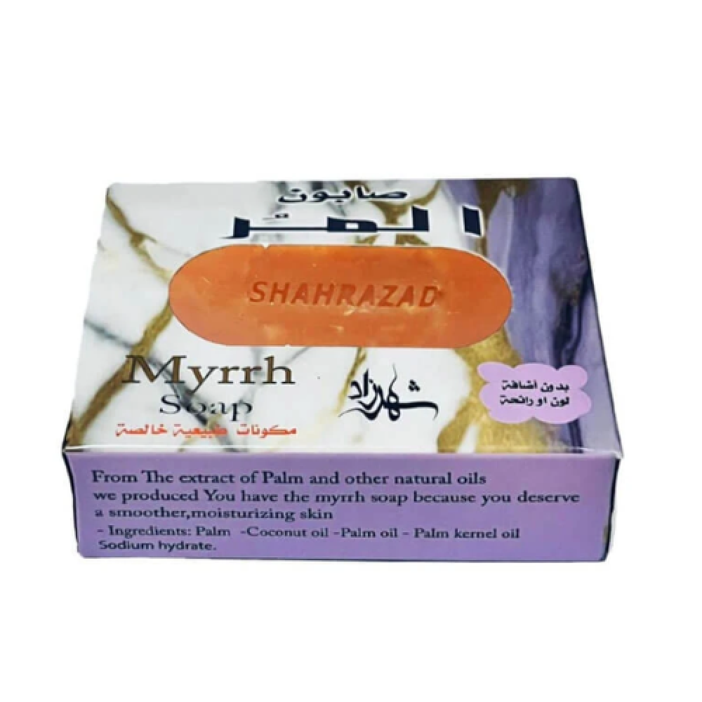 شهرزاد صابون المر طبيعي مصمم خصيصًا لتوحيد لون البشرة وإزالة البقع والهالات السوداء. يحتوي على مكونات طبيعية فعالة مثل المر، الذي يمتلك خصائص مضادة للأكسدة ومضادة للبكتيريا، مما يساعد في تحسين مظهر البشرة. يعمل الصابون على تفتيح البقع الداكنة والهالات السوداء، ويمنح البشرة إشراقة ونضارة طبيعية.