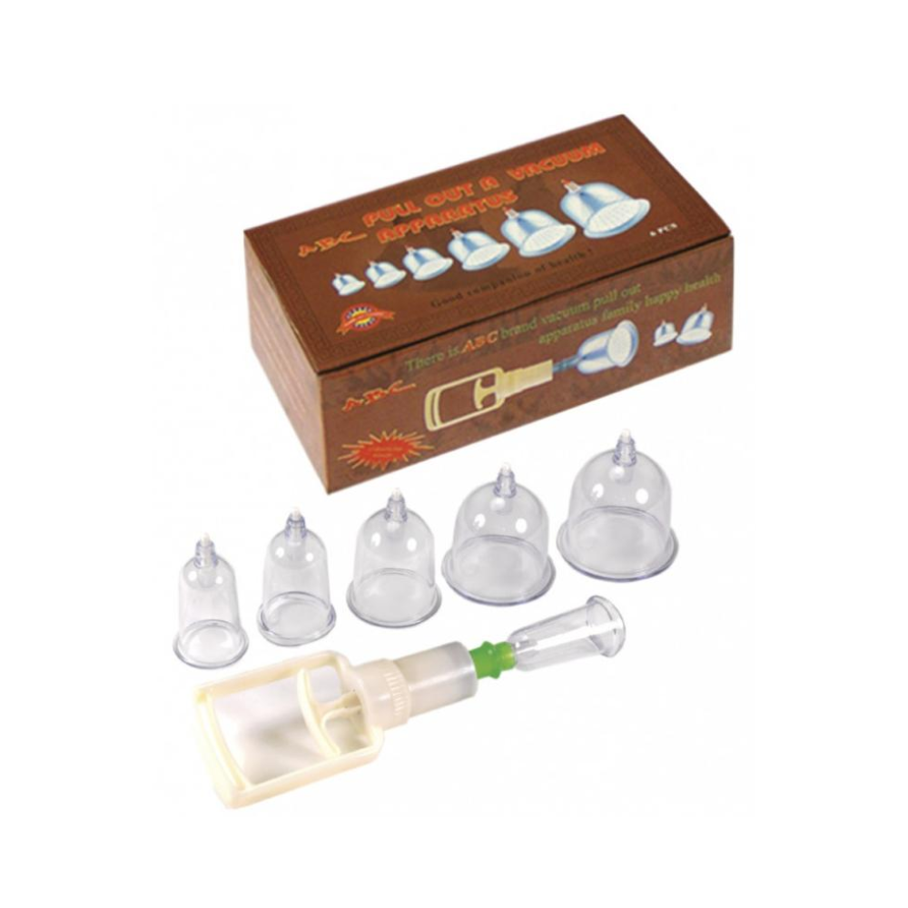 - مجموعة تحتوي على 06 قطع من كاسات الحجامة مع جهاز شفط.