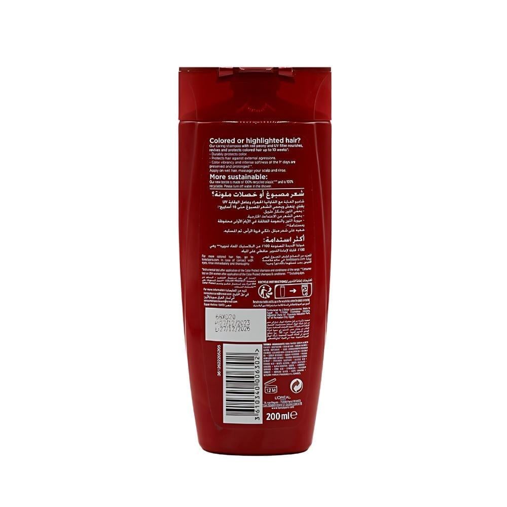 شامبو الفيف حماية اللون من لوريال باريس - 200 مل هو منتج مخصص للحفاظ على ألوان الشعر المصبوغ، مما يضمن استمرارية اللون وتألقه لفترة أطول.