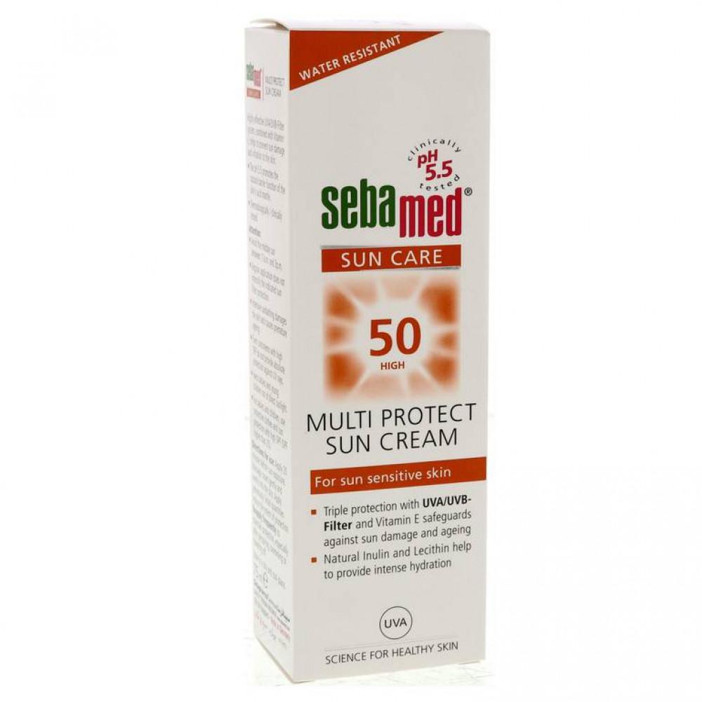 كريم واقي شمس سيباميد صن كير متعدد الحماية SPF50 مناسب للبشرة المتهيجة والحساسة Sebamed SPF50 Sun Care Cream 75ml سهل الاستعمال,غير دهني,لا يترك اية بقايا او ترسبات بيضاء. يحمي البشرة من الشيخوخة بفضل فيتامين E وبروفيتامين ب5 المجدد. له تاثير ترطيب مركز ومجدد كما انه مقاوم للماء.