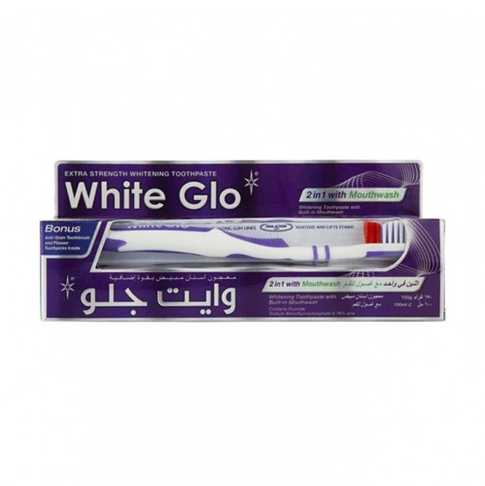 - معجون تبييض الأسنان الفريد ذو القوة المزدوجة مع قاعدة غسول الفم من وايت جلو.