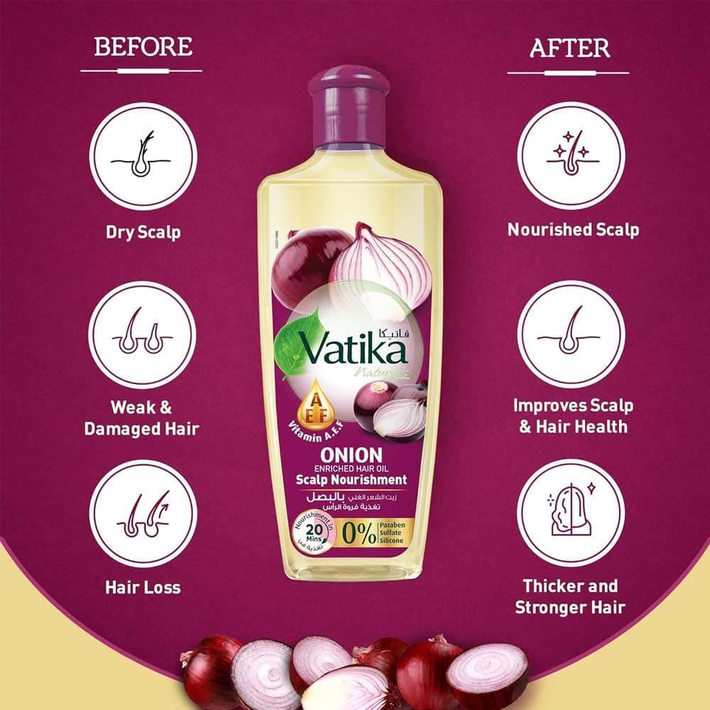 الوصف:فاتيكا زيت الشعر الغني بالبصل مصمم خصيصًا لتغذية فروة الرأس وتعزيز صحة الشعر. يحتوي على مستخلصات طبيعية من البصل، المعروف بخصائصه الفعالة في تعزيز نمو الشعر وتحسين قوته. يساعد هذا الزيت في تقوية بصيلات الشعر، تقليل تساقط الشعر، وتحسين لمعان وحيوية الشعر.فوائد ومميزات فاتيكا زيت الشعر الغني بالبصل المتوفر في متجر أسراركو:يحتوي البصل على مركبات تعزز الدورة الدموية في فروة الرأس، مما يساعد في تعزيز نمو الشعر.يساعد في تقوية بصيلات الشعر، مما يقلل من تساقط الشعر ويعزز كثافته.يوفر العناصر الغذائية الأساسية لفروة الرأس، مما يحسن من صحتها ويقلل من التهيج والجفاف.يجعل الشعر أكثر لمعانًا وحيوية بفضل تغذيته العميقة.يحتوي على مكونات طبيعية مثل مستخلص البصل، مما يجعله آمنًا للاستخدام المنتظم.يساعد في ترطيب الشعر ومنع تكسره وتقصفه.يساعد في تقليل القشرة بفضل خصائصه المضادة للبكتيريا والفطريات.يساعد في علاج نهايات الشعر المتقصفة بفضل تركيبته المغذية.يمكن استخدامه كجزء من روتين العناية بالشعر بسهولة.يحتوي على عطر خفيف ومنعش لا يزعج الحواس.طريقة أستعمال فاتيكا زيت الشعر الغني بالبصل المتوفر في متجر أسراركو:خذي كمية مناسبة من الزيت وضعيها على فروة الرأس والشعر.دلكي فروة الرأس بلطف باستخدام أطراف الأصابع بحركات دائرية لتحفيز الدورة الدموية.وزعي الزيت على طول الشعر حتى الأطراف.غطي شعرك بقبعة الاستحمام أو منشفة دافئة واتركيه لمدة 30 دقيقة إلى ساعة. التحذيرات:للأستخدام الخارجي فقط.يحفظ في مكان بارد وجاف ،يحفظ بعيداً عن متناول الأطفال.