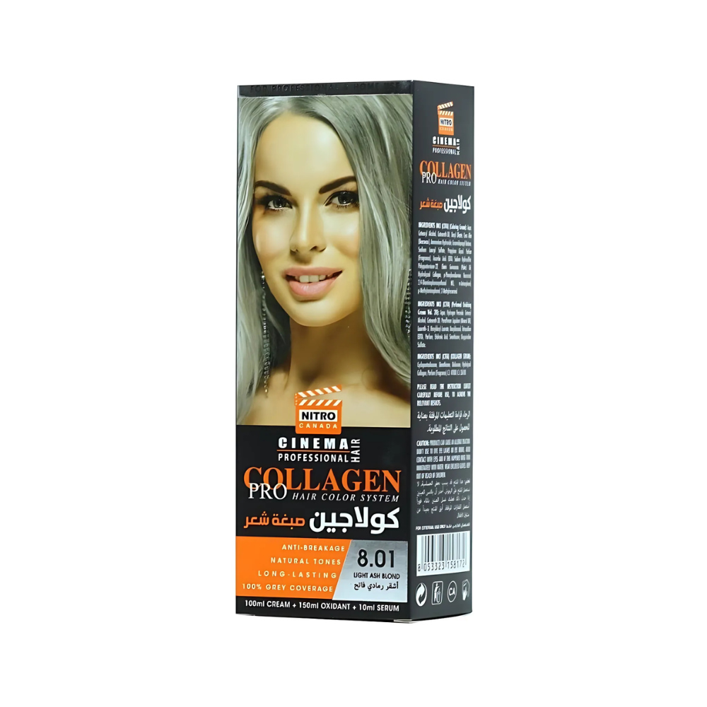 صبغةالكولاجين مننيترو كندا بدرجة8.01 أشقر رمادي فاتح تمنحك لونًاأشقرًا فاتحًا مع لمسة رمادية تعكس إطلالةمميزة وهادئة. تمنح هذه الصبغة شعركلونًا طبيعيًا ولامعًا بفضل تركيبتها الغنية بـالكولاجين الذي يعمل علىترطيب الشعر وحمايته من الجفاف، معتغطية كاملة للشعر الأبيض. هذه الصبغة مثالية لمن تبحث عن لونهادئ وعصري مع العناية الكاملة لشعرها.