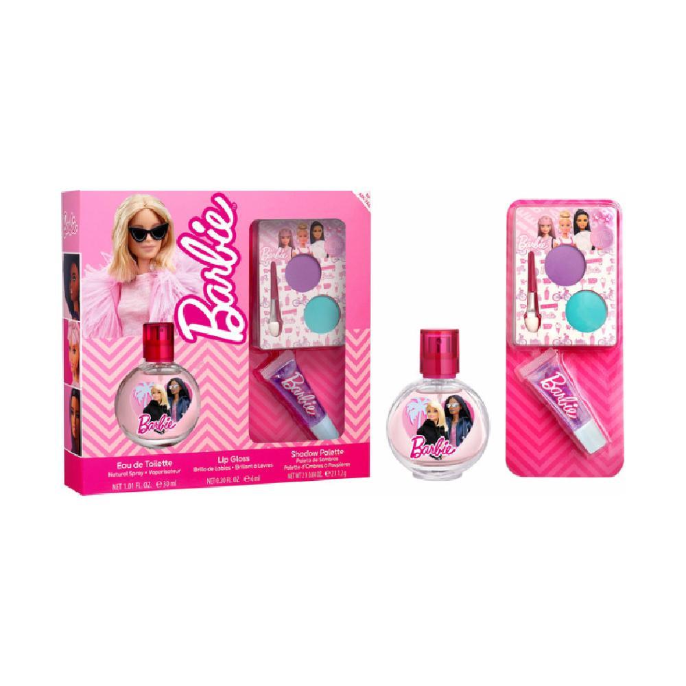 مجموعة باربي للأطفال مكونة من عطر 30 مل او دى تواليت وملمع الشفاه 6 مل وظلال العيون 2*1.2جرام إنها مجموعة هدايا للفتيات مثالية للاستخدام اليومي